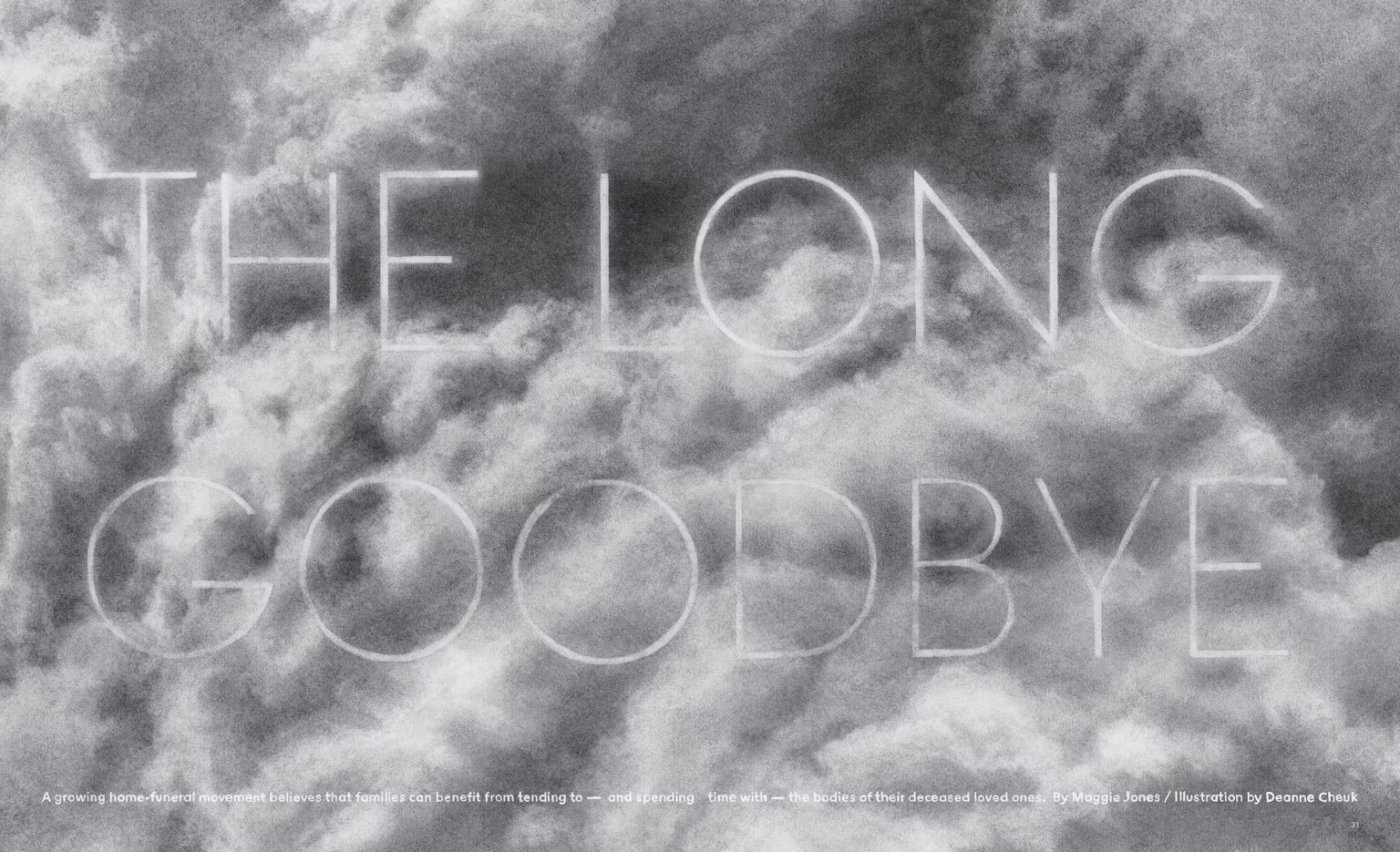 Charcoal illustration and typography for the cover of The New York Times Magazine, conceptualizing a feature story about the notion of home death.