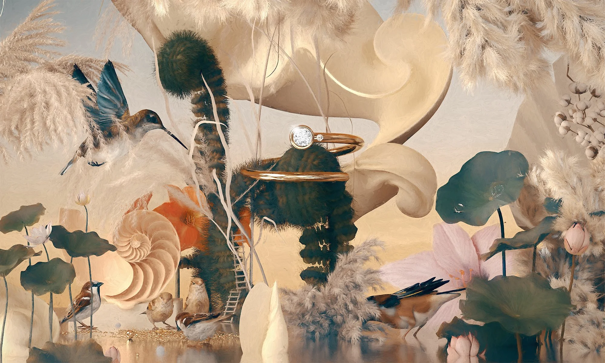 A series of 3D brand illustrations and key visuals by Studio Brasch for New York-based luxury jewelry company, Shiffon.